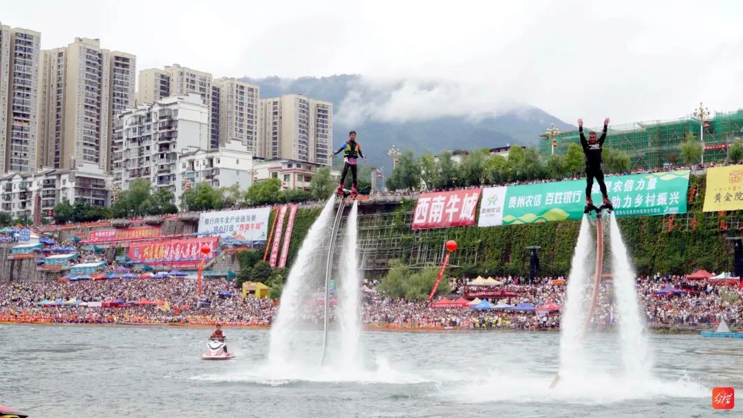 6月22日,贵州省沿河土家族自治县乌江河上,鼓声雷鸣,龙舟竞渡,水花飞溅,激荡人心。