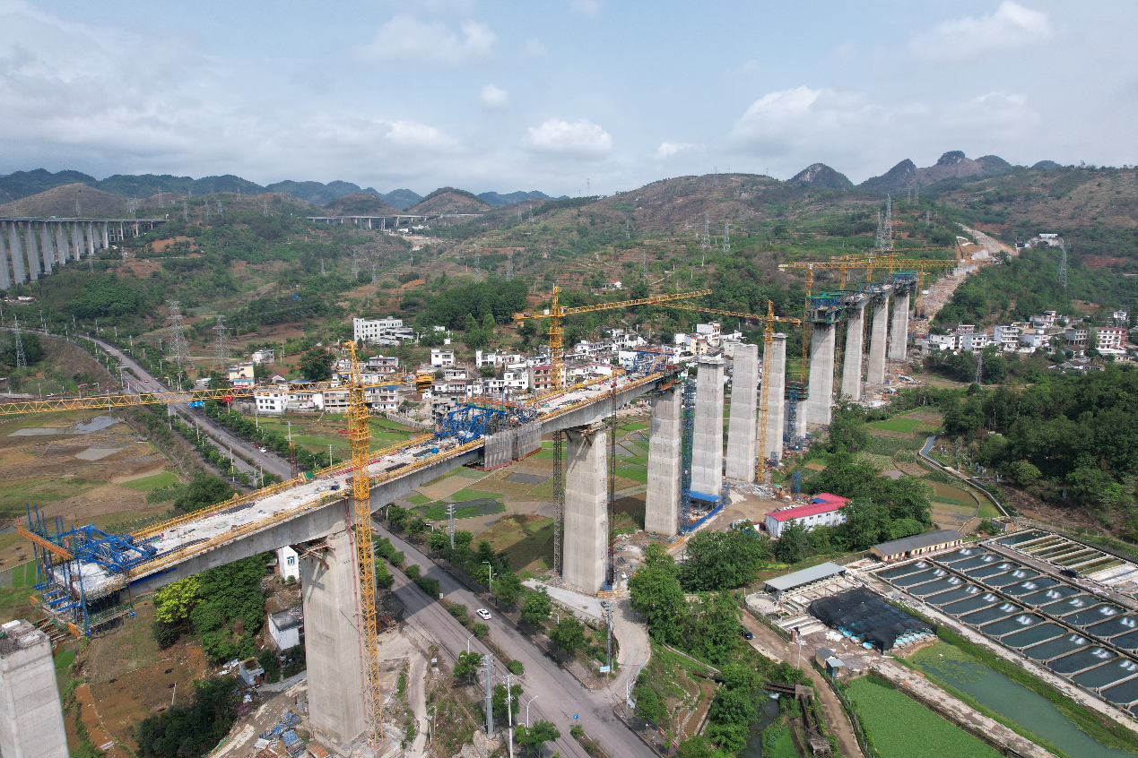 盘兴铁路是贵州省实现“市市通高铁”的最后一个项目,桥隧比90.66%,是目前贵州在建高铁中桥隧比最高的线路。盛夏以来,盘兴铁路三标段千余名工人不惧夏日“烤”验,科学施工,加快推进工程进度。