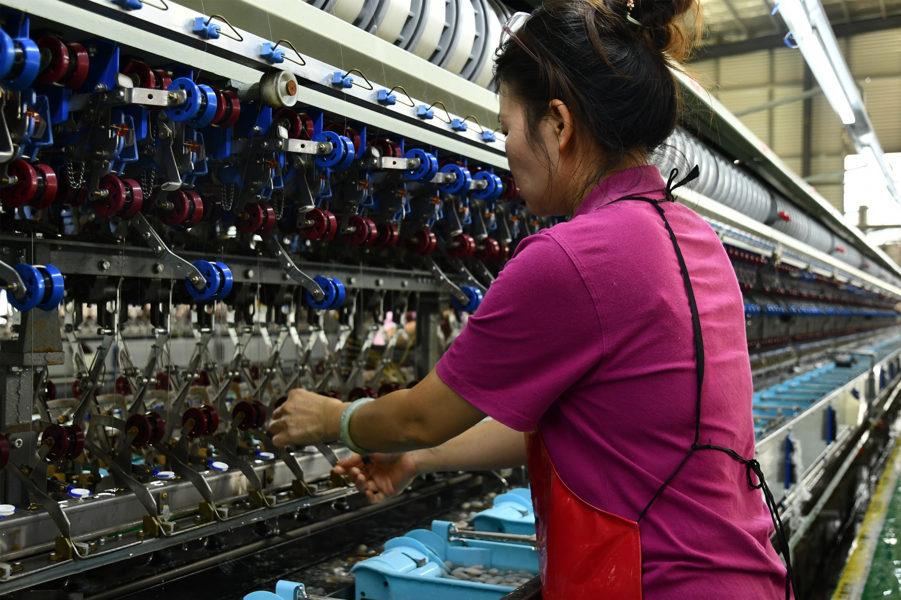 而在缫丝车间内,机器声隆隆,银丝穿梭,各条生产线快速运转,工人们在各自岗位上专注工作,现场一派繁忙景象。