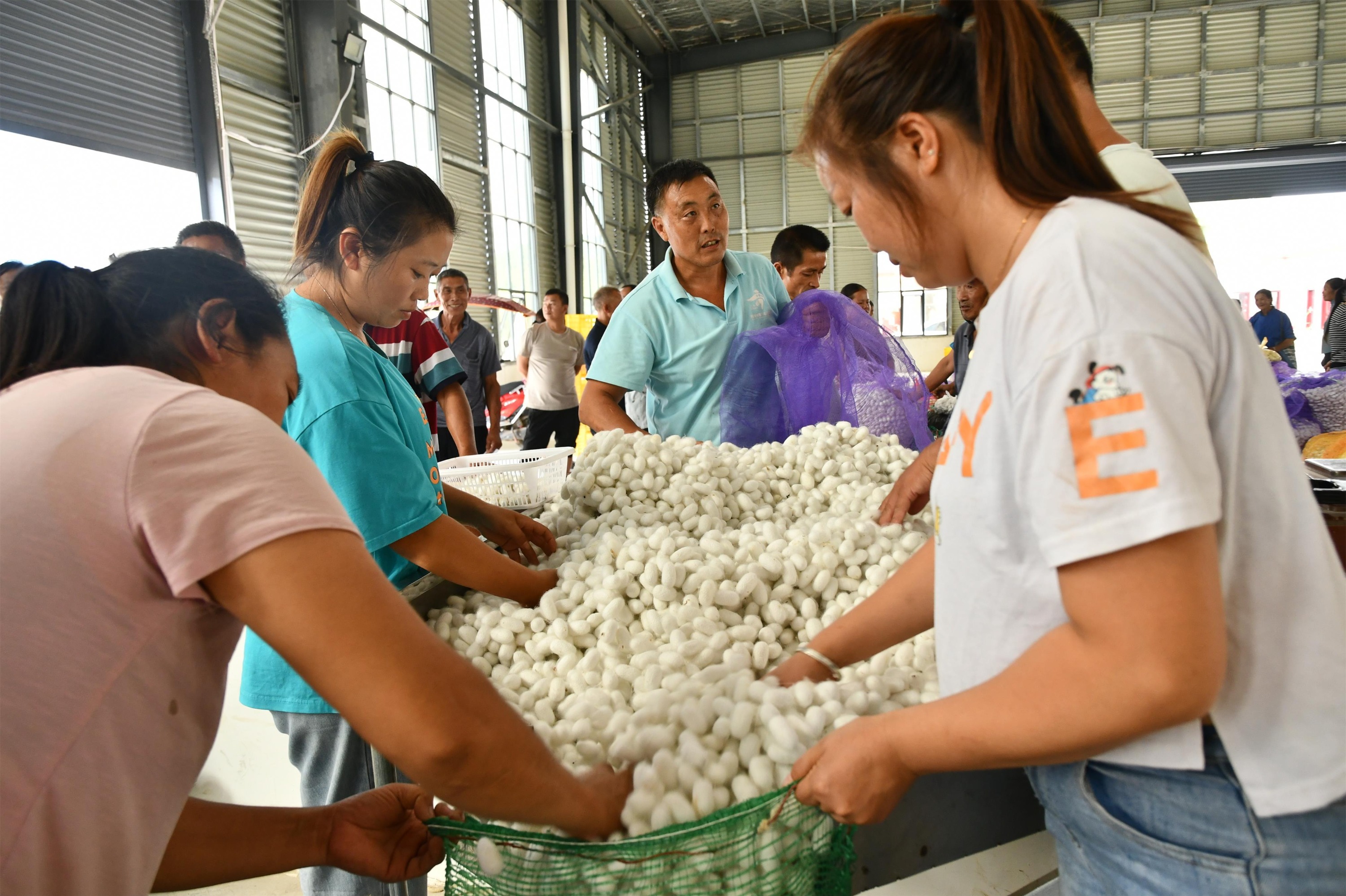 近日,记者在贵州丝缘丝绸科技有限公司的厂房里看到,前来售茧的蚕农络绎不绝,一袋袋圆滚滚的蚕茧如雪似霜,蚕农们脸上洋溢着丰收的喜悦。现场工作人员按质论价、优质优价,从筛选、检验、定级,到称重、定价、开票,一切井然有序。