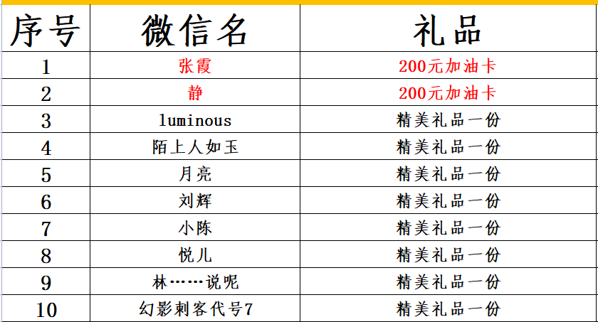 参加活动的中奖名单