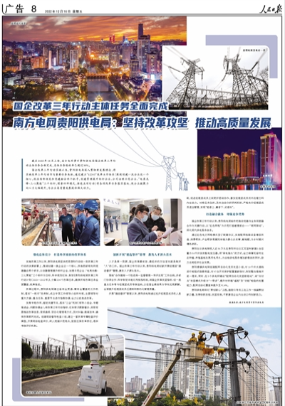 截至2022年11月上旬,南方电网贵州贵阳供电局国企改革三年行动主体任务全面完成,总体任务验收率已超过99%。