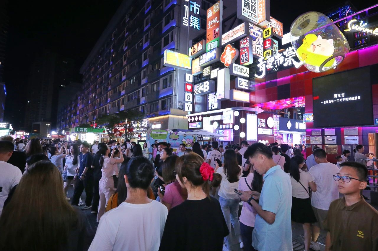 暑期以来,每到夜色降临,位于南门区的青云路步行街就人声鼎沸,咖啡店、非遗文创店为这方天地增添了文艺气息,多才多艺的主播随处可见。电竞网吧、密室逃脱等潮流业态,让传统夜市与现代潮流碰撞出新火花。烤肉、丝娃娃、烤鱼、花甲粉、小龙虾、臭豆腐……各种特色美食琳琅满目,香味扑鼻。市民游客穿梭于各个店铺,体验“爽爽贵阳”的热辣滚烫,感受城市烟火气。