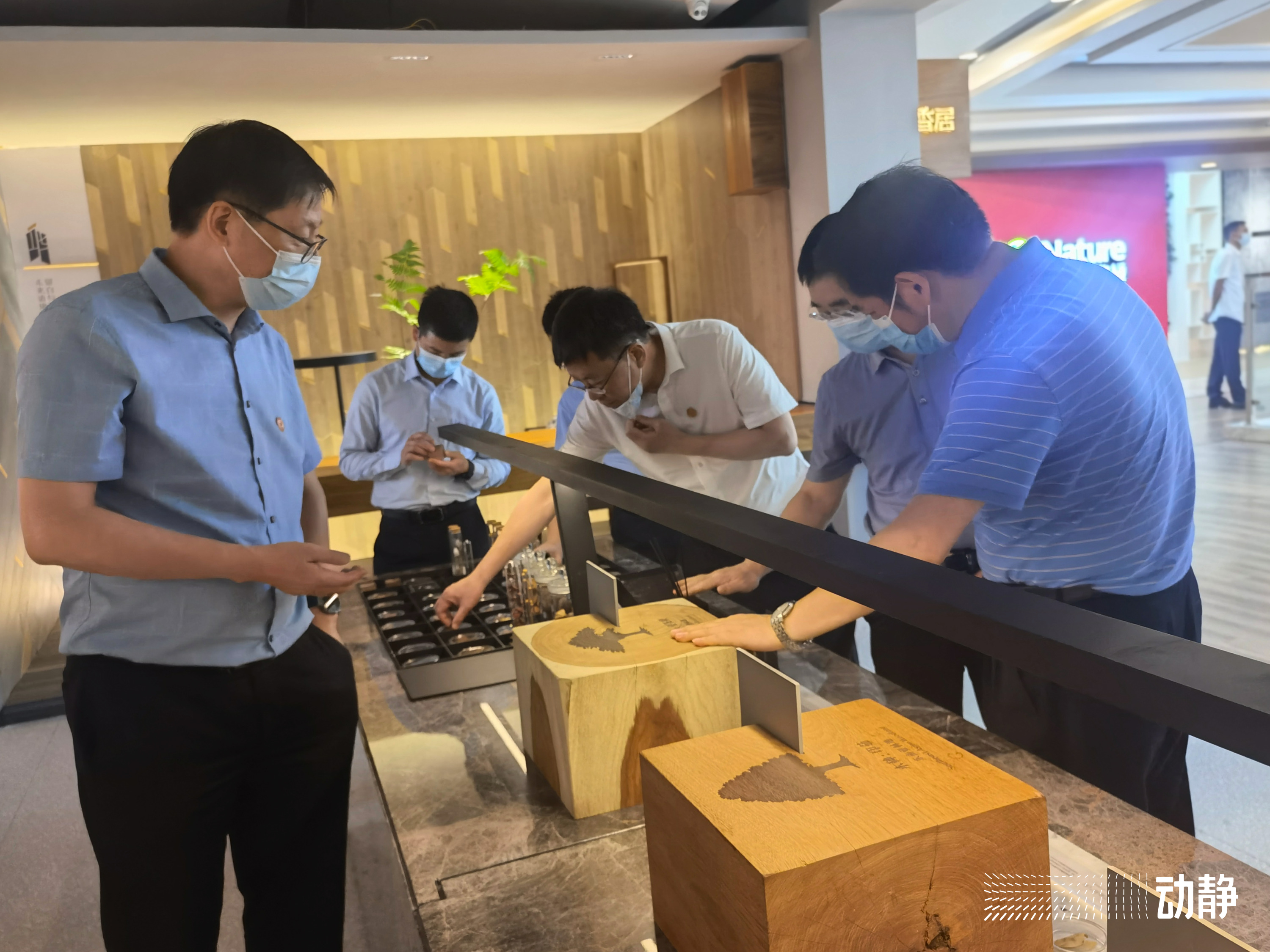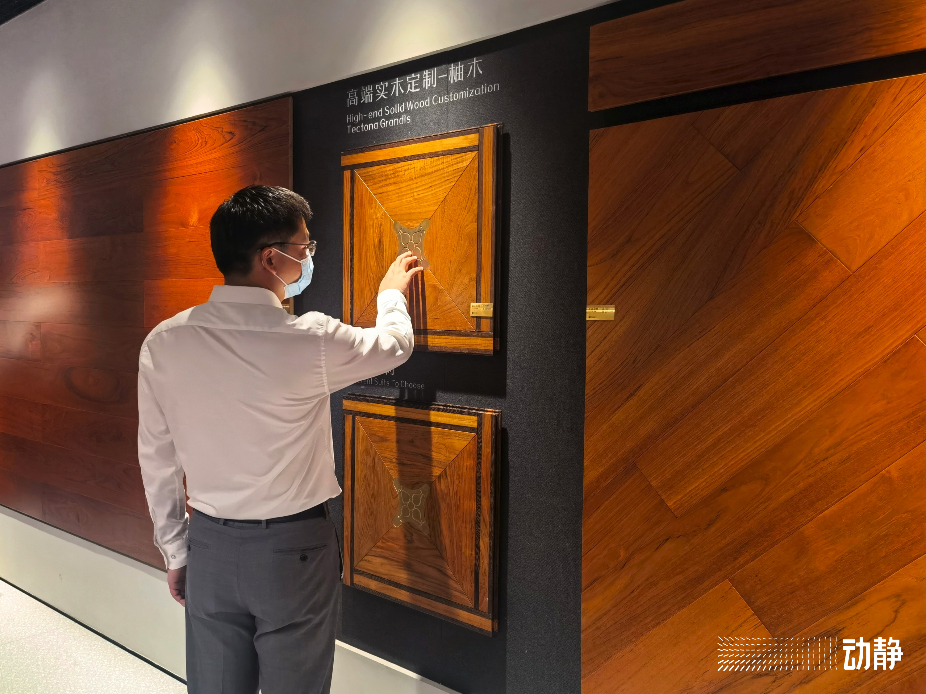 代表团现场参观了工程展厅,并了解企业生产经营情况。记者看到,展厅内的产品种类丰富,多种材质的地板吸引了大家的注意。“这种柚木就是劳斯莱斯使用的。”企业负责人介绍道。代表团成员纷纷体验了多种产品的触感和嗅觉。