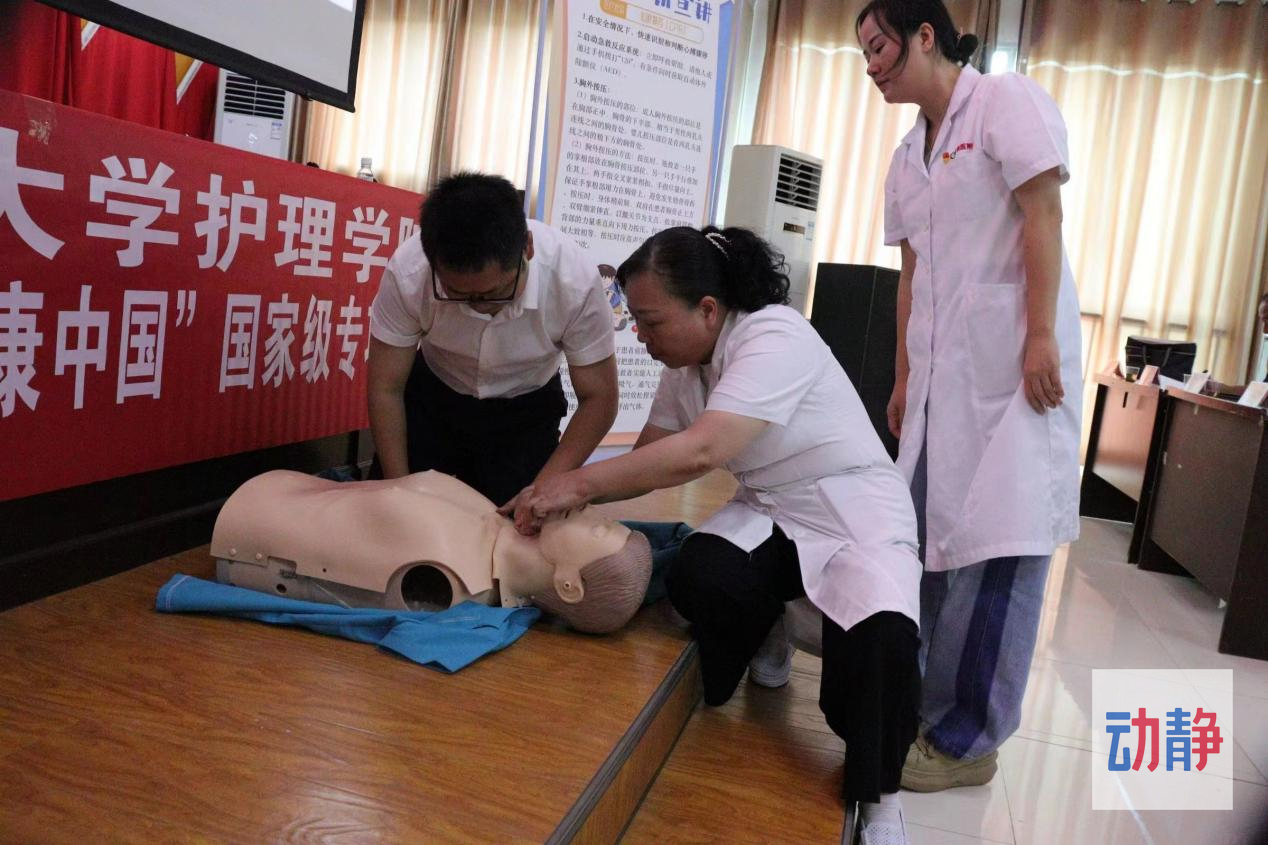 在蕉溪镇,服务队为当地党员干部和各村健康建设负责人开展了健康知识讲座,培训了海姆立克急救法、心肺复苏术等急救技术。