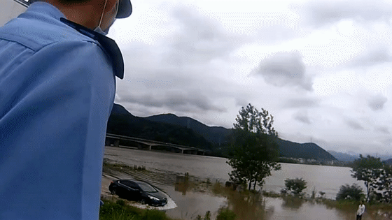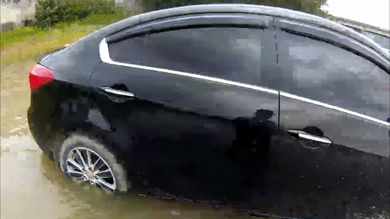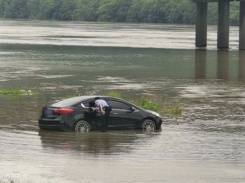 只见一辆黑色的轿车停在距离岸边约50米的地方