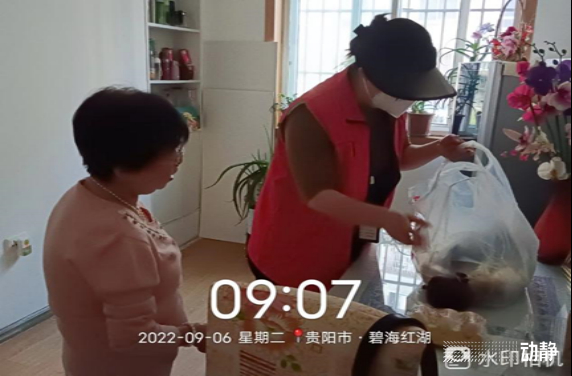 9月4日下午6点,77岁的顾德根老人,收到了贵阳观山湖区栖景湾社区居委会工作人员送来的生活物资。