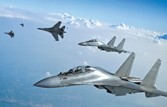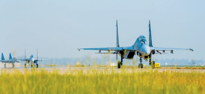飞行员根据风速、气流等气象要素调整战机速度和高度