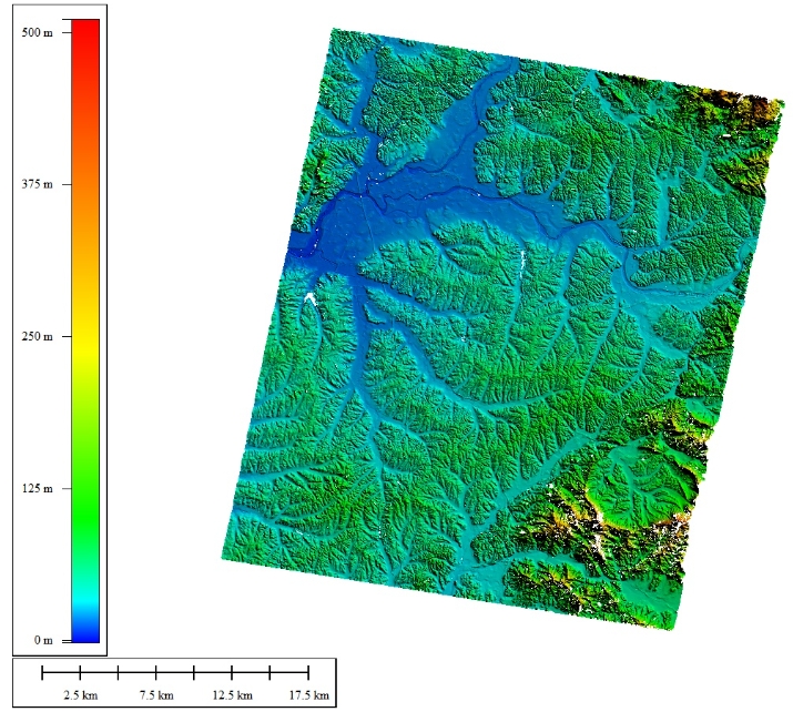 卫星入轨后,开展了多模式高分辨率成像和多区域多基线干涉测绘。采用ICESAT-2激光控制点数据对地形测量结果进行高程精度验证,图中试验地点高程中误差分别优于2米和5米,初步验证结果满足1:5万比例尺测绘精度要求。后续经过姿态和基线标定等操作,高程测量精度将进一步提升。