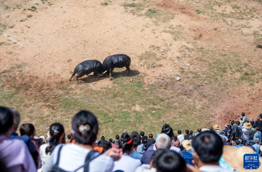 10月4日,人们在贵州省从江县下江镇观看斗牛。