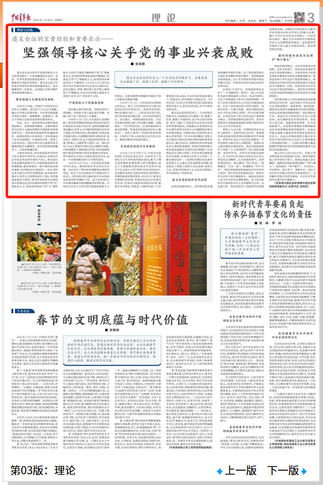 遵义会议已经过去90年,但留下的宝贵经验永远值得我们弘扬。新时代新征程上的中国共产党人,传承弘扬遵义会议精神,最根本的就是要坚定拥护“两个确立”,坚决做到“两个维护”,不忘初心、牢记使命,埋头苦干、勇毅前行,在以习近平同志为核心的党中央坚强领导下,全面推进中国式现代化建设,为实现中华民族伟大复兴而不懈奋斗。