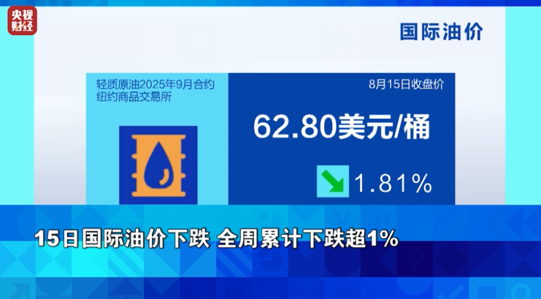 15日国际油价下跌 全周累计下跌超1%