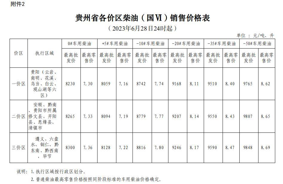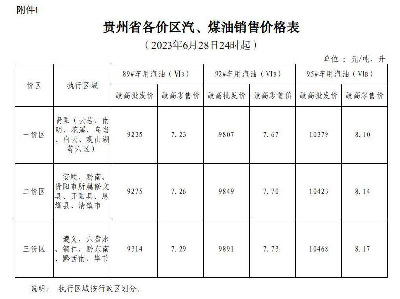根据国家成品油价格形成机制,国家发展改革委决定自2023年6月28日24时起上调国内成品油价格。按照国家调整要求和相关规定,我省89#汽油(国VIB)、0#柴油价格每吨在现行标准基础上均提高70元,具体价格可由各经营企业在不超过最高批发、零售价格的前提下确定。调整后各油品最高价格见附件。