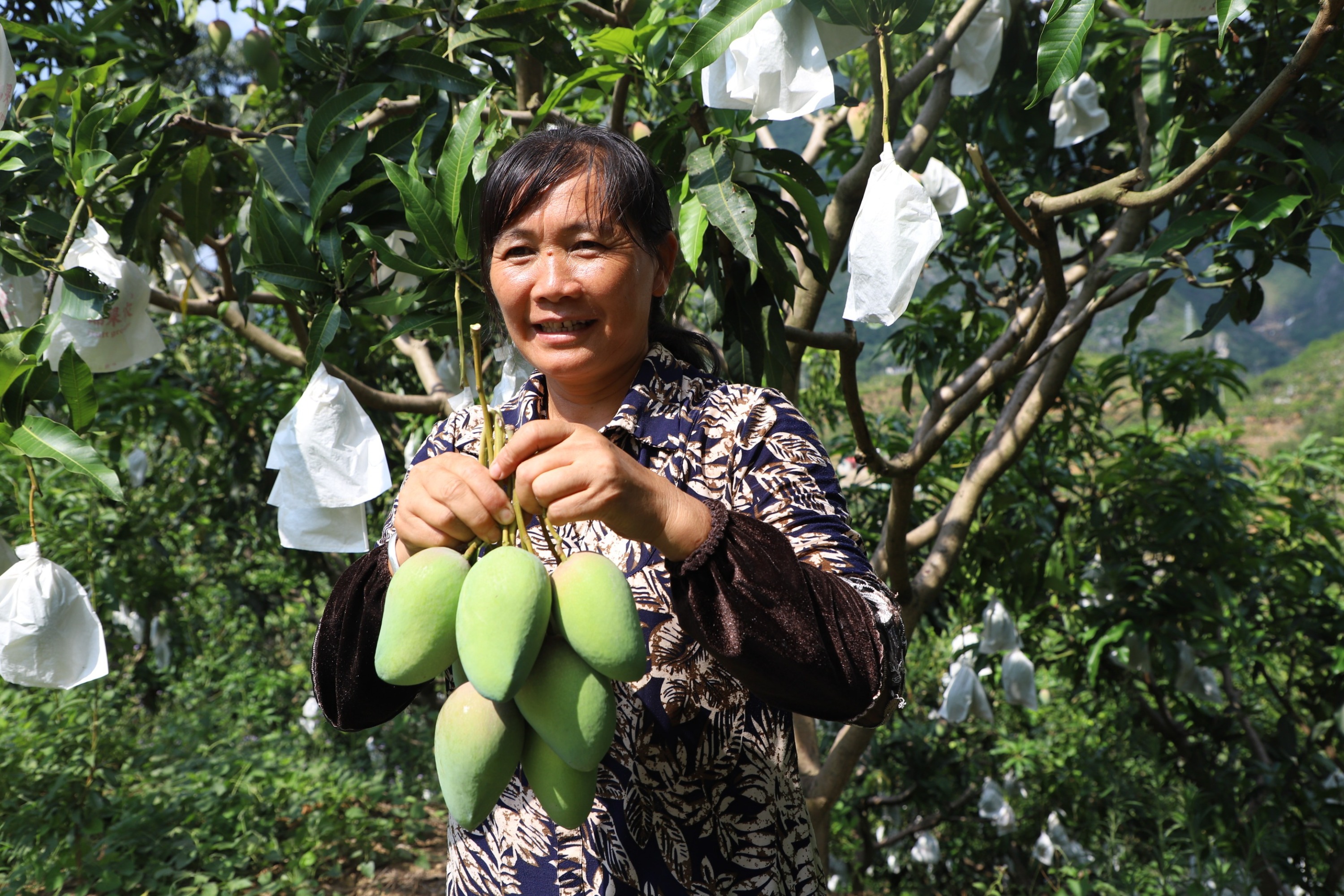 在致富村芒果种植基地,连片的芒果林一望无际,硕果累累,种植户们不停穿梭在芒果林中采收成熟的果实,洋溢着丰收的喜悦。
