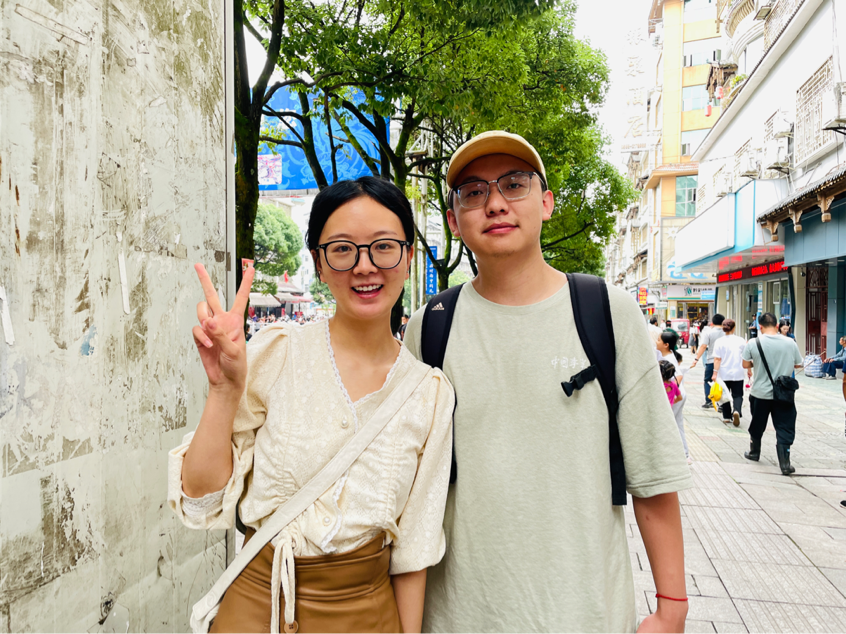来自贵州贵阳的陈小姐,陪伴男友回丹寨看望外婆,正好遇上丹寨非遗周,他们也来到非遗盛装巡游的街道上,观看巡游表演。陈小姐认为丹寨非遗周的活动十分有意义,通过非遗周活动宣传、推广贵州乃至全国各地的非遗产品,能让更多人看到丰富多彩的非遗,也能吸引其他地方游客来到贵州,喜欢上贵州。