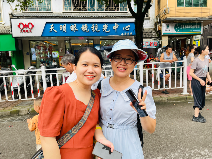 在非遗盛装巡游的街道上,还有另一位来自广东茂名的黄女士,她带着孩子来到丹寨,与大学时的闺蜜相聚此处,一起欣赏非遗。黄女士非常喜欢丹寨、喜欢这里的民族服饰,她专程前来观看非遗盛装巡游,她认为丹寨的非遗非常值得大力宣传,无论是盛装巡游,还是非遗产品都给她留下了非常深刻的印象,她希望今后还能来贵州参加这样的活动。