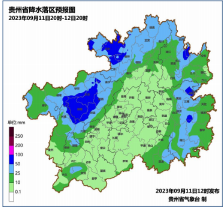 根据最新气象资料分析,受弱冷空气影响,今天夜间到12日,贵州将出现强降雨天气。省的西部、北部和东部部分乡镇有大到暴雨,个别乡镇有大暴雨;各地最高气温下降4至8℃。