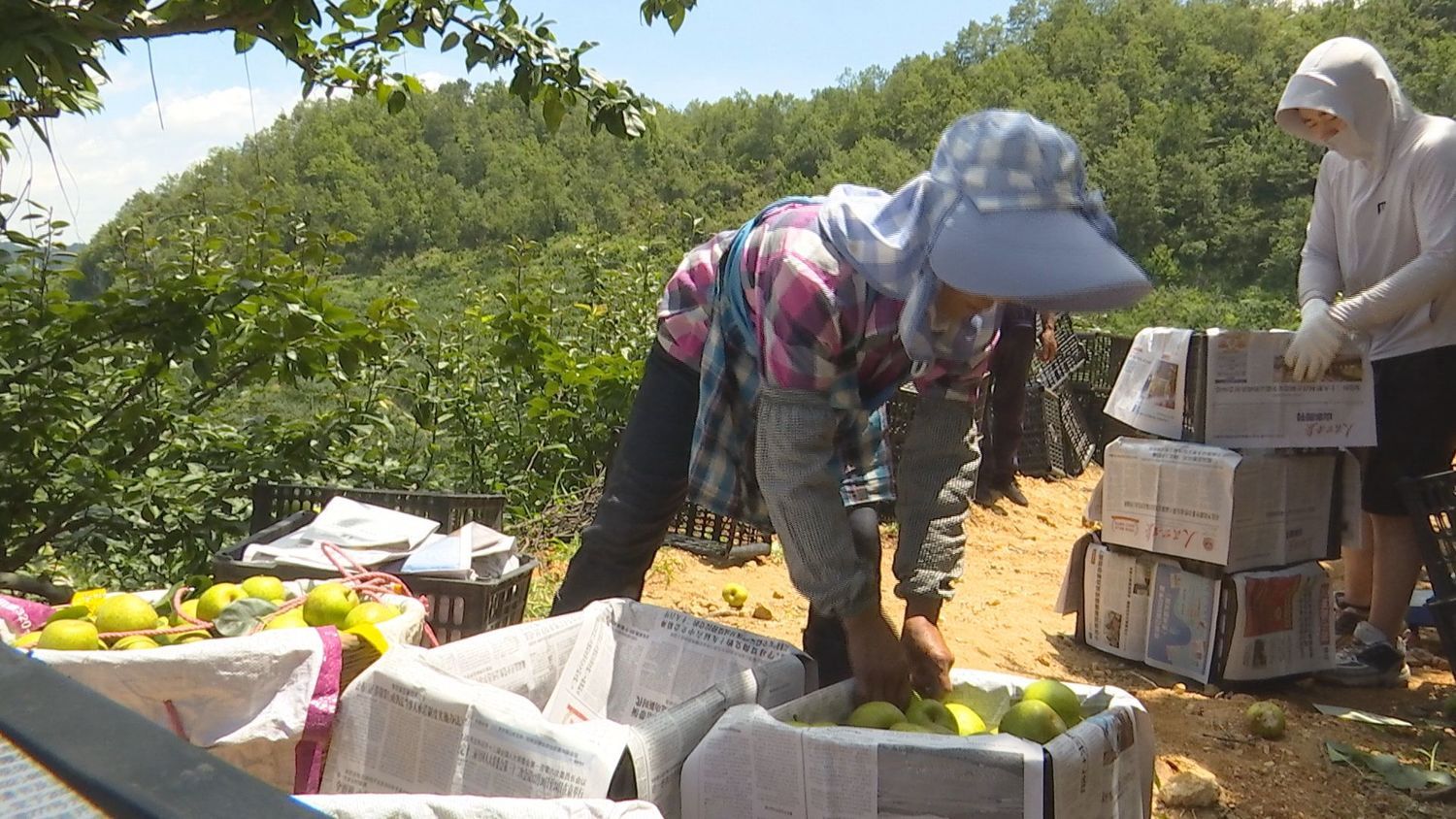 眼下正是夏季瓜果成熟上市的季节,记者来到黔南布依族苗族自治州惠水县断杉镇水果种植基地,漫山遍野的蜂糖李树、梨树挂满了果实,青中带黄的蜂糖李圆润饱满,拳头大的六月雪梨让人垂涎欲滴,果园里的工人们提着果篮,正在小心翼翼地采摘果子,准备销往外地。