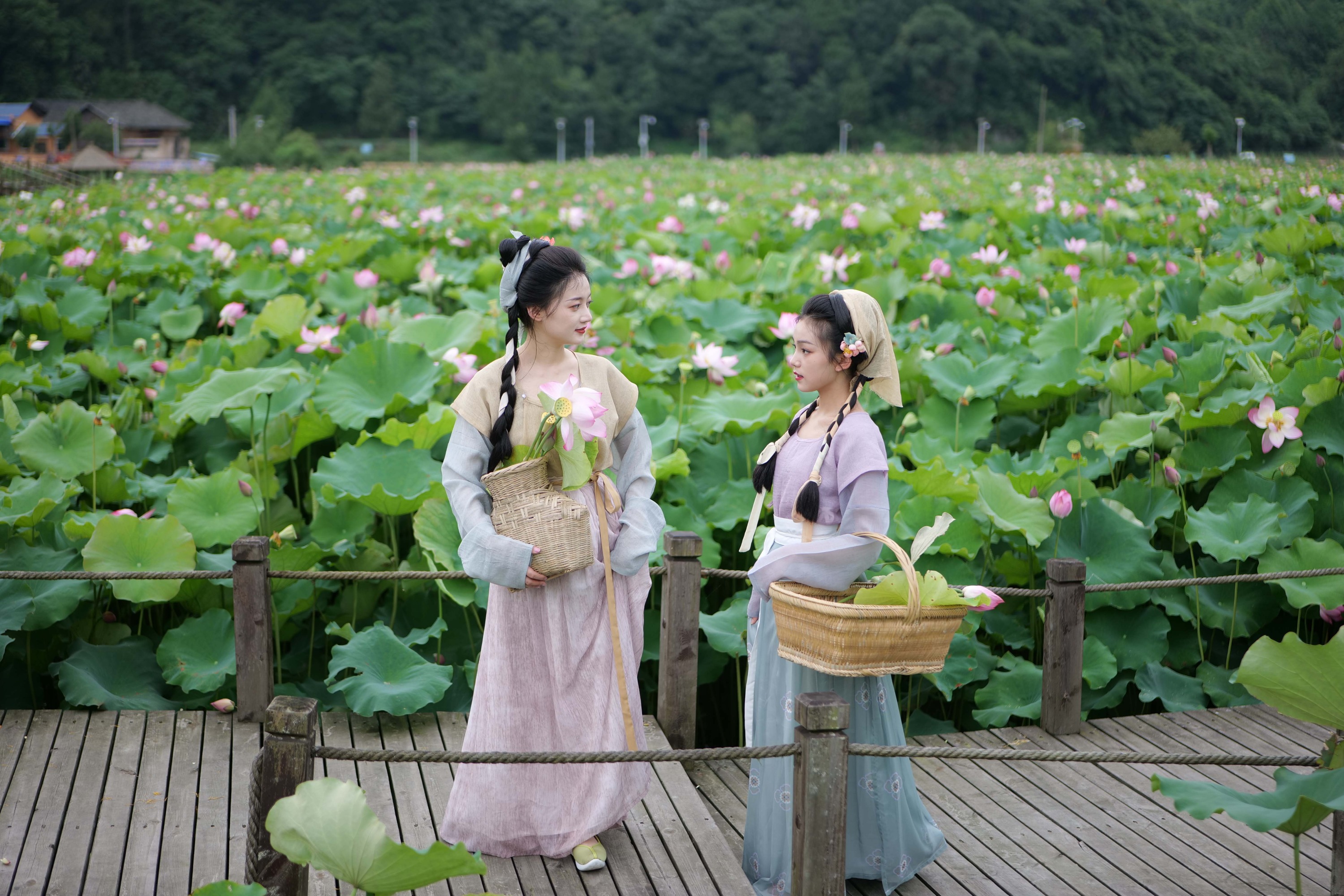 7月9日,在岑巩县客楼镇下寨村,300余亩荷花竞相绽放,吸引了周边游客前来游玩赏花拍照。