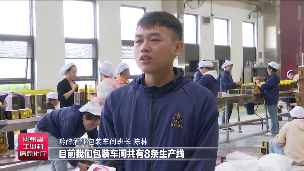 黔醉酒业包装车间班长陈林说,目前他们的包装车间共有8条生产线,包装工人有400多名员工,每天的产量在6万件左右。