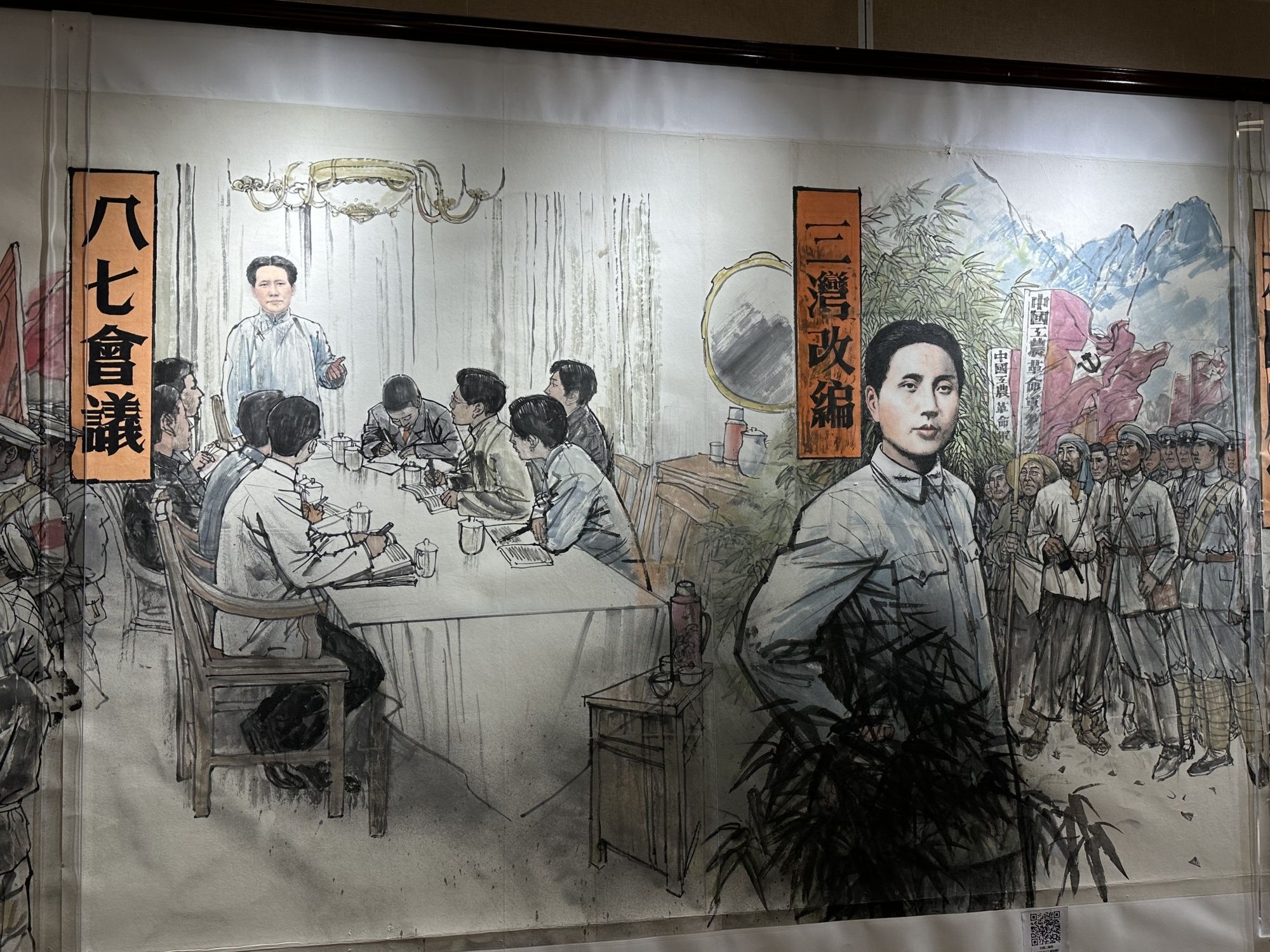 书画长卷中,有多幅主题是与贵州有关的党史画面,这些画作深得贵州人民的喜欢。“1935年,中共中央在贵州遵义召开了政治局扩大会议。这次会议,在极端危急的关头挽救了党,挽救了红军,挽救了中国革命。是党的历史上一个生死攸关的转折点。根据当时的场景,我创作了《遵义会议》;同年,中央红军在黔川滇交界赤水河流域进行的运动战,我创作了《四渡赤水》;以及1949年年底挺进贵州时的《挺进大西南》,书画长卷的作者李福顺先生表示,这些中国共产党建党史上的重大事件,《信仰的红色印记》都一一记录,贵州是中央红军战斗过的地方,自己沿着红色印记,来到贵州展出画作,希望让人们通过一个又一个画面,去回望当年那些重要的历史事件。据了解,在画展开幕式上,李福顺先生特别将书画长卷中的《遵义会议》主题画作捐赠给海南省图书馆珍藏。