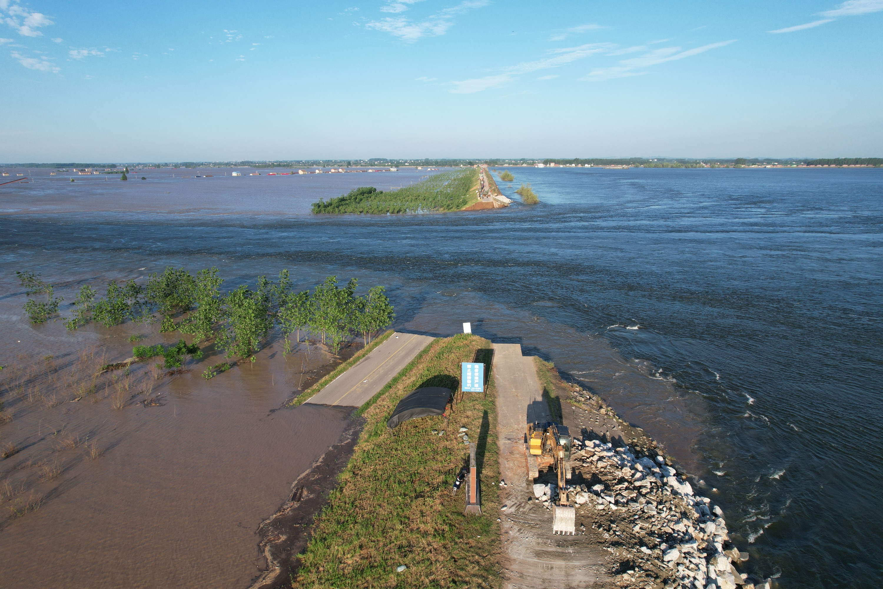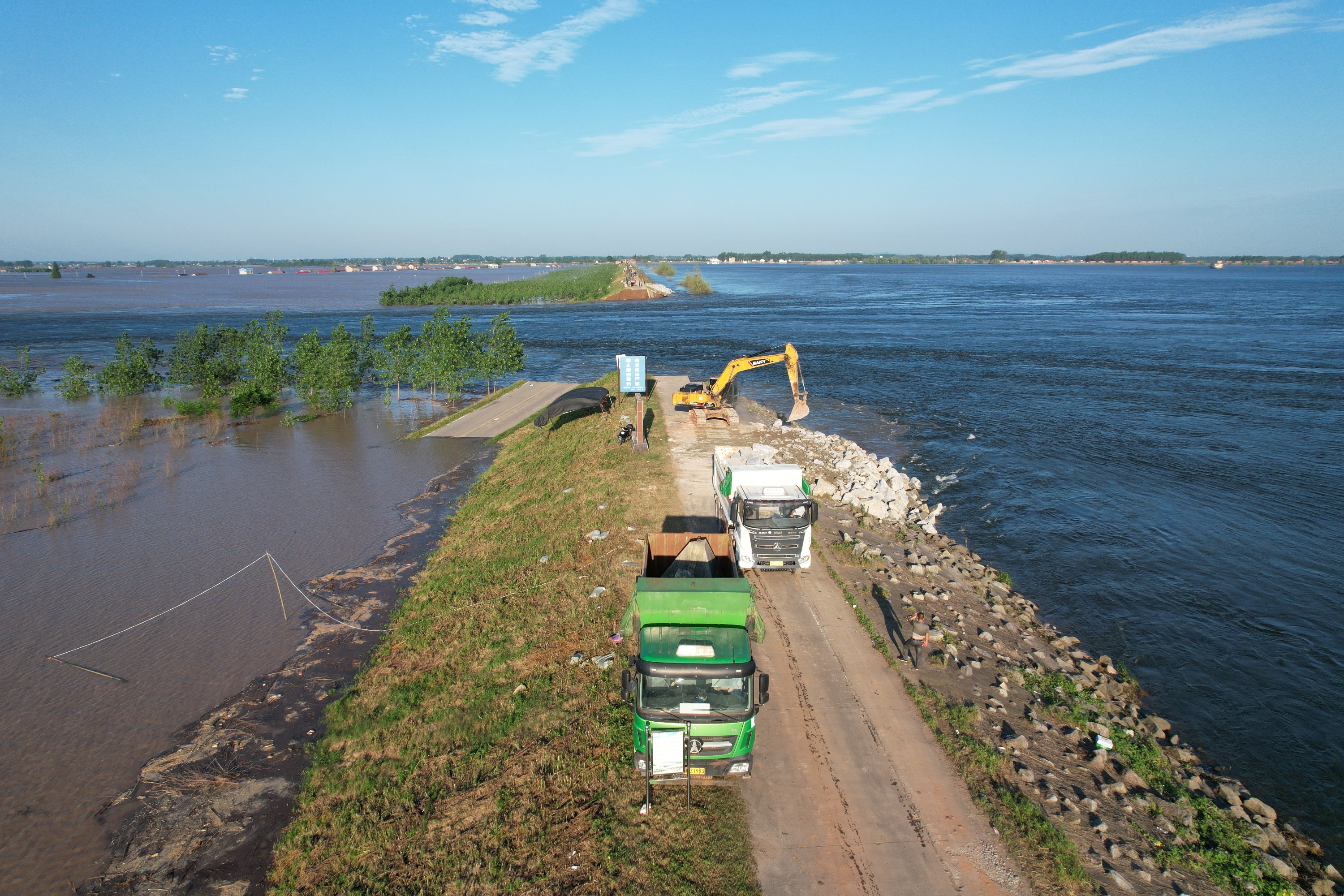 目前,前线正加紧组织工程机械加紧施工,在决口两端建设4个倒车平台,并在决口两端倾倒大型石块,建设‘裹头’,减缓水流对决口冲刷,防止决口扩大。