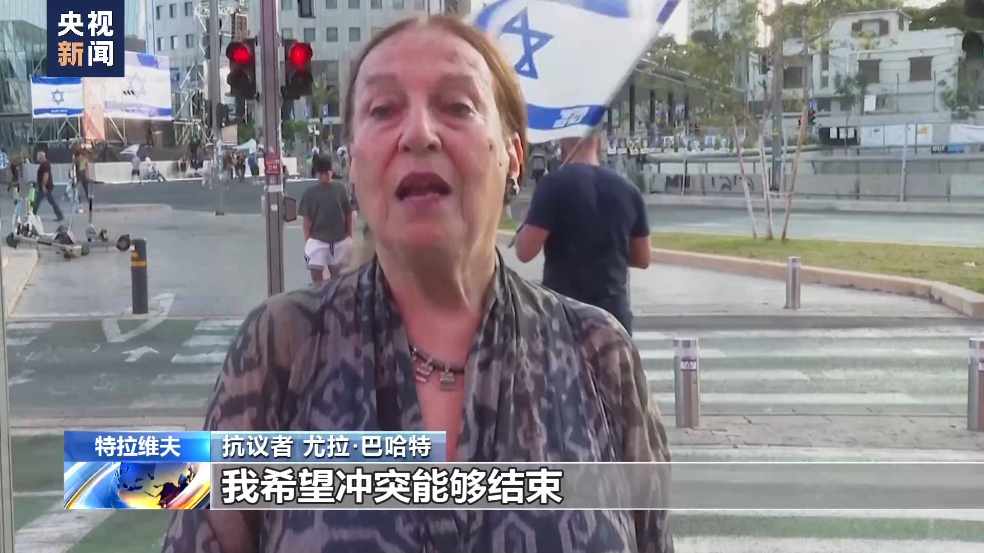 抗议者尤拉·巴哈特:我希望冲突能够结束,以色列北部不要发生战事。尽管从某种程度上来说,现在当地战事还在继续,我们的处境很糟糕,我们希望领导层和民众们能决定什么是结局,在什么时候结束这场冲突。