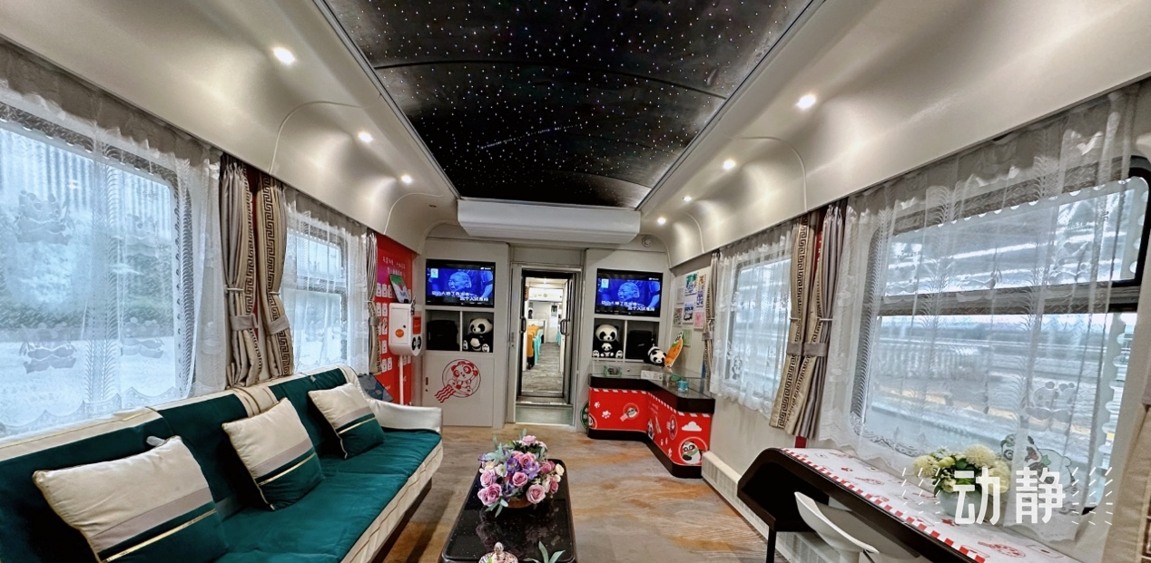 据了解,这趟旅游专列又被称为移动的“星级酒店”。车上配备淋浴间、手机充电等设备,娱乐车厢设有卡拉OK、咖啡吧、酒吧等配套服务设施。此外,列车上还配备了经验丰富的导游和随车医生,准备了各种特色美食,让旅客游览的同时,品尝各类美食。