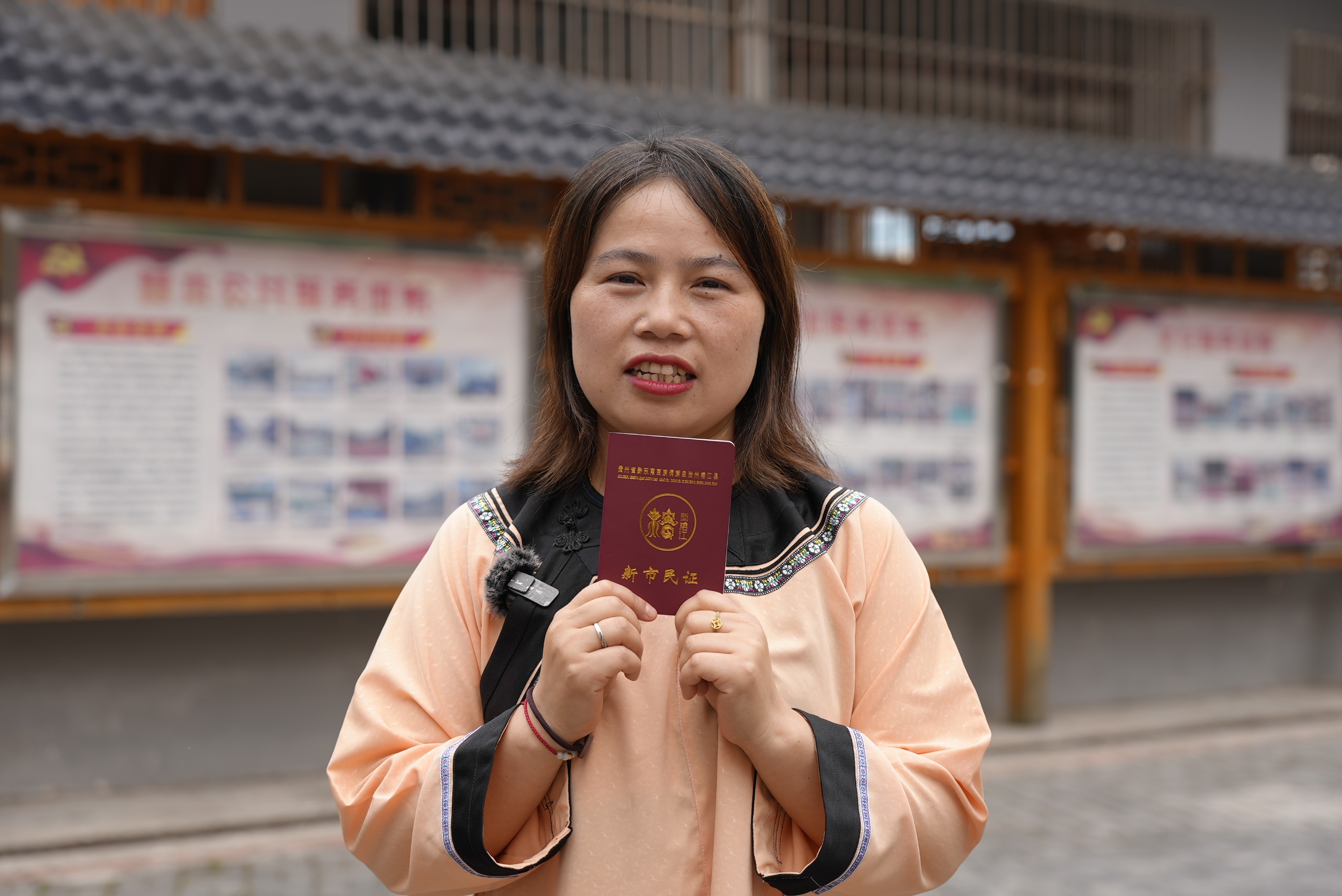 榕江县“榕易融”第一批新市民证获得者田锦花说:“我是从定威乡搬迁下来的,非常感谢党的好政策,我们从农民转变成了市民,我们在城里就学、就医、就业都非常的方便,现在的生活感觉非常的幸福。”