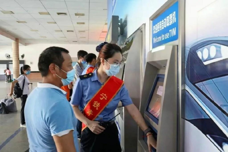 到车站自动售票机、售票窗口换取