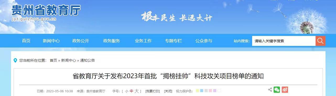 为进一步落实省委省政府决策部署,持续推进高校开展有组织科研,聚焦问题导向,加快科技成果转化与产业化,服务地方经济社会发展,根据《贵州省教育厅自然科学研究项目管理办法》相关要求,现将2023年首批“揭榜挂帅”科技攻关项目榜单予以发布,并就相关事项通知如下。