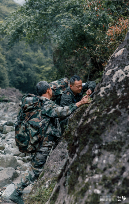 穿行在梵净山蜿蜒曲折的河道上、险峻的山崖峭壁间,夏德群和队友搜寻着野生动物活动过的痕迹与珍稀植物的分布情况,并一一作好记录。“我至少看到过30次黔金丝猴,成群的时候最多有二十多只。每一次看到心情都很激动,就像自己家的小孩一样,要把它保护好。”