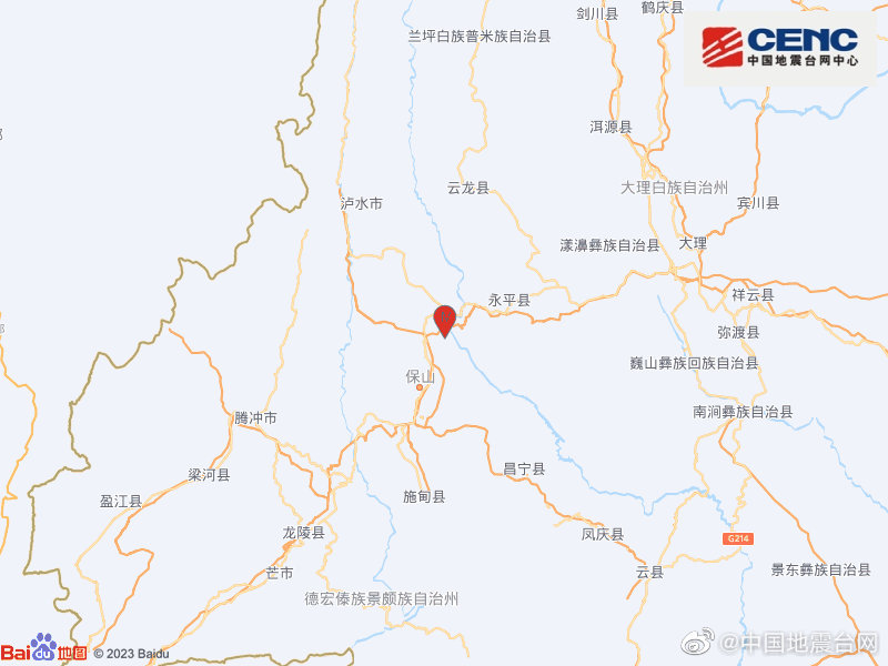 震中距保山市区29公里,距昆明市区347公里。地震造成当地震感强烈,大理、临沧、楚雄、芒市等地震感明显。