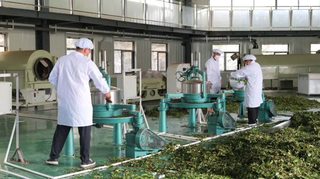 新鲜的茶青不能耽搁,从采收、运输到加工,每个环节都在和时间赛跑。在加工厂房内,刚采摘下来的茶青经过摊晾、杀青、揉捻、烘干等工序,逐渐褪去青涩,变成色泽墨绿的干茶,整个车间内弥漫着醇厚的茶香。