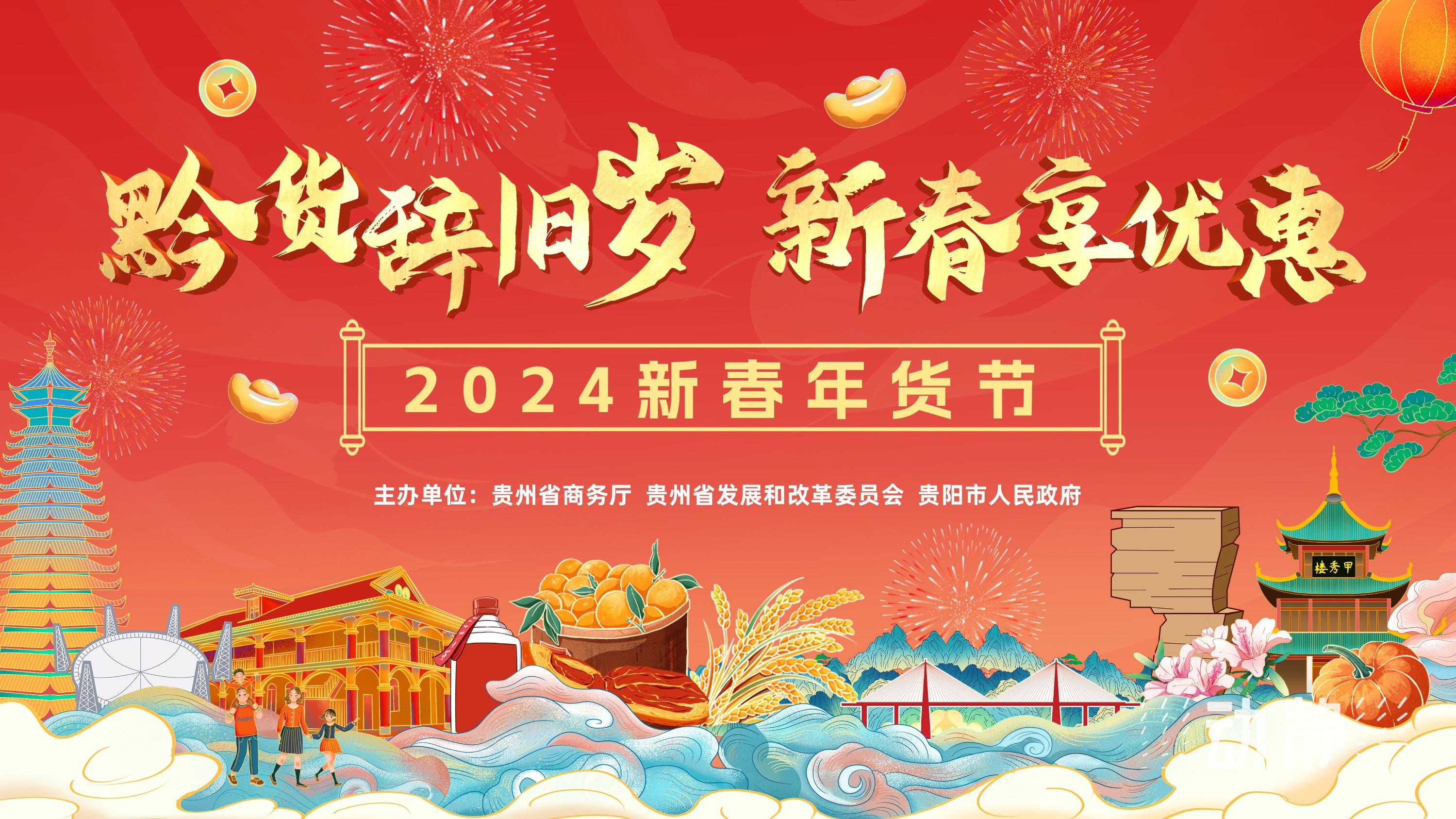 据悉,本届贵州新春年货节采取“品牌造节、省市联动、多业协同、线上线下、内外融合”的模式,集中组织贵品年货展、进口商品展、汽车家居展、对口协作地区商品展“四展”,并将举办特色年货发布会、年夜饭展销会、旅游商贸洽谈会、房地产交易会、新闻发布会“五会”,举办“市州主题日、网上年货节、时尚生活节、美酒美食嘉年华、老字号嘉年华、非遗民俗文化展演”等六大活动,并同时举办持续九天的“贵州电商达人龙年迎新晚会”。