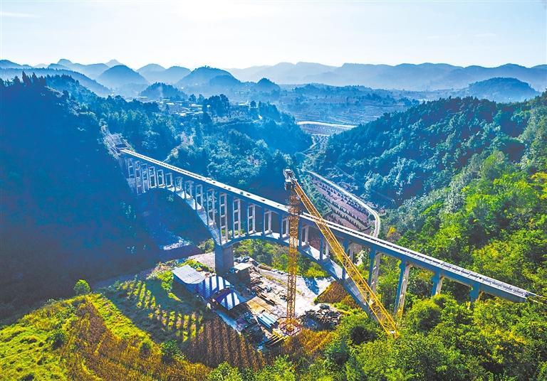 9月19日,建设中的贵州夹岩水利枢纽工程毕节市黔西市境内横跨两山的拱桥渡槽。该工程是以城乡供水和灌溉为主、兼顾发电,建成后将有助于解决黔西北地区缺水问题。