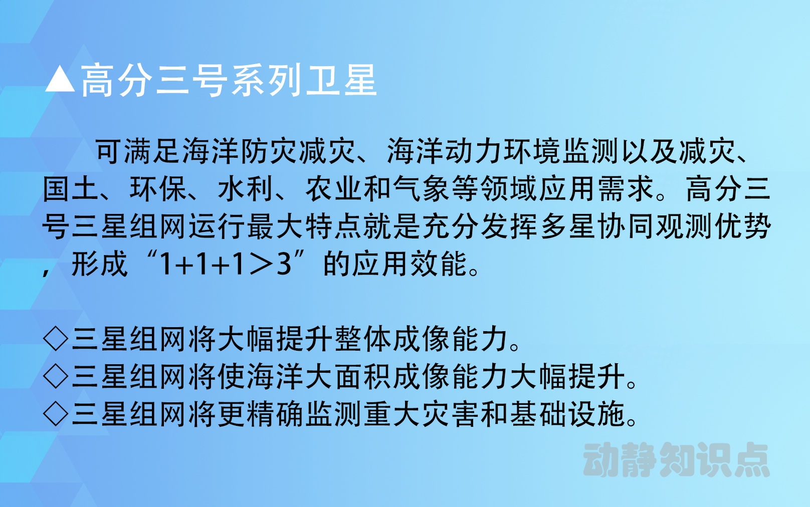 ▲4月7日7时47分,高分三号03星在酒泉卫星发射中心由长征四号丙运载火箭成功发射。我国海陆监视监测迎来三星组网时代。三星组网后,整体成像能力将大幅提升,形成海陆雷达卫星星座,实现1米分辨率、1天重访。