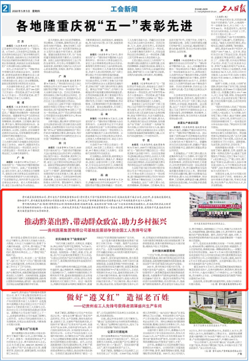 2022年4月29日,喜讯从贵州省现代物流产业集团传来,省蔬菜集团基地发展部喜获全国工人先锋号。沉甸甸的荣誉,是基地发展部全体干部职工克服重重困难,战胜难以想象的各种挑战,谱写的一曲以新发展理念引领企业高质量发展的华彩乐章。