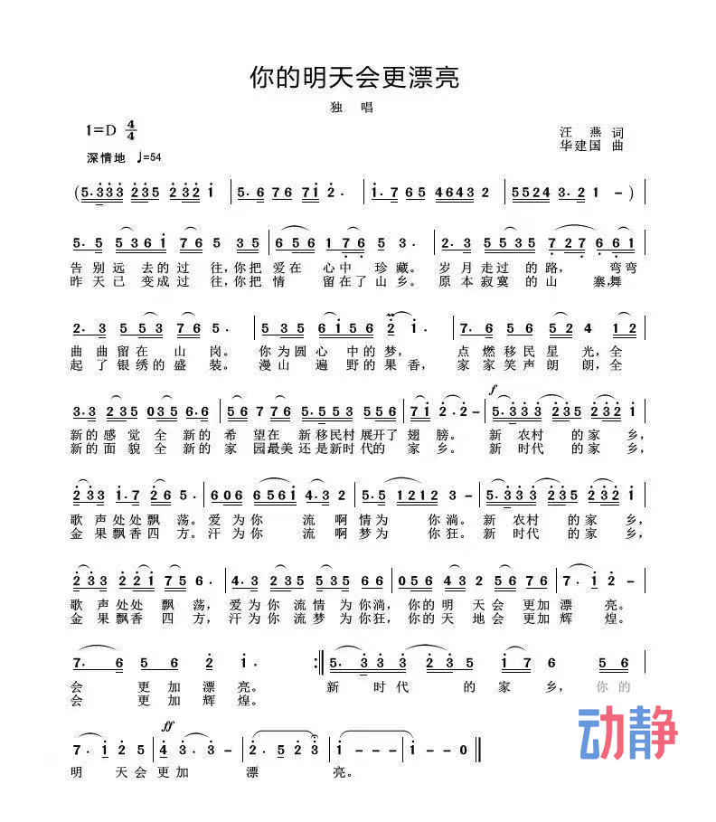 MV《你的明天会更漂亮》由凯里市音乐家协会理事,黔东南州音乐家协会会员汪燕作词,中国音乐家协会会员,中国音乐著作权协会会员华建国作曲,凯里第十中学音乐老师音乐教师周庭婷演唱,青年导演王合飞执导。
