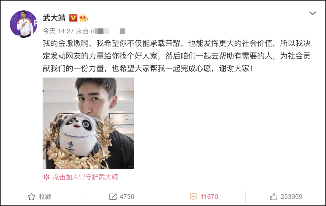 武大靖发微博称