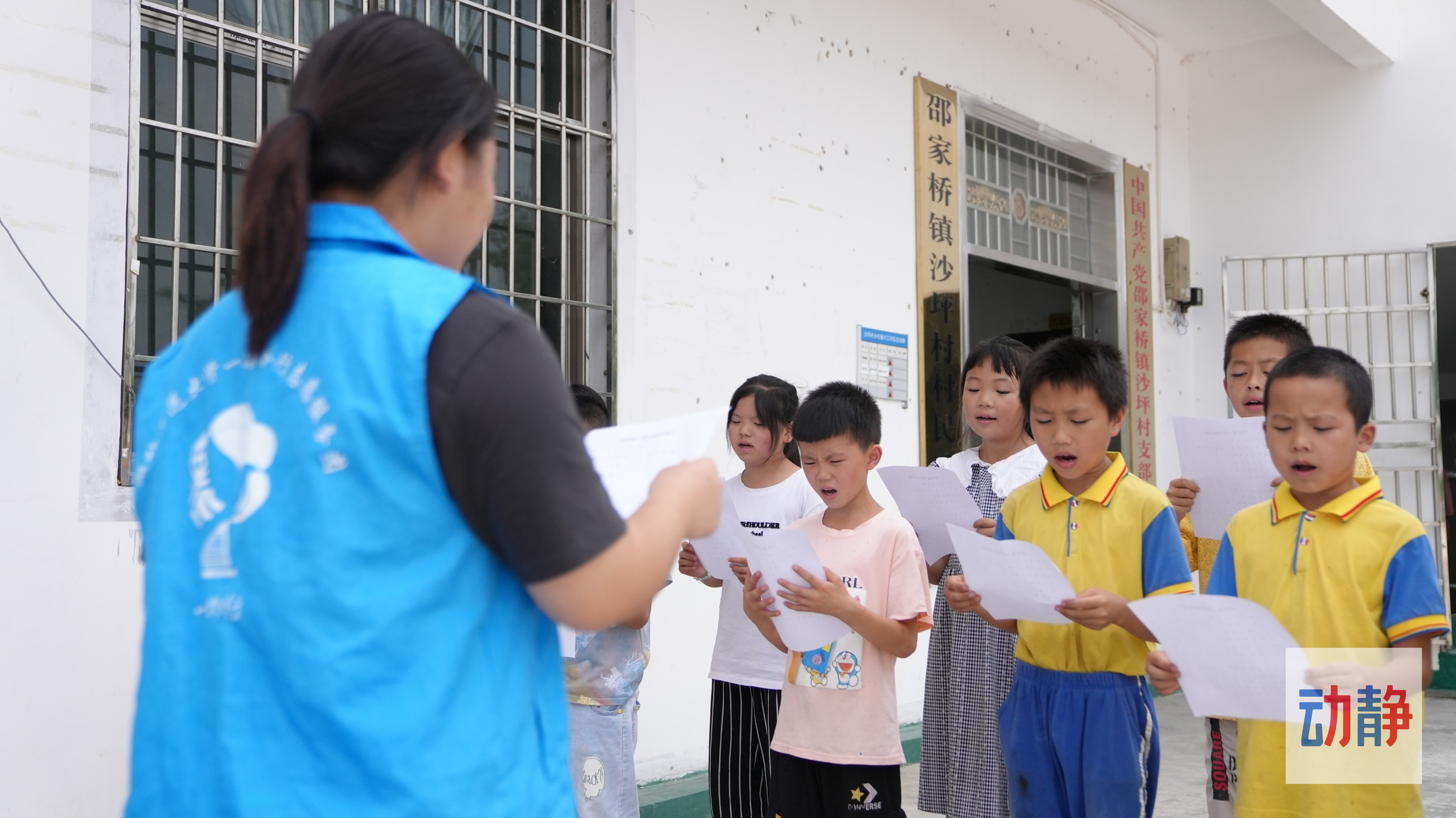 在后屯社区的孩子们享受绘画、歌唱带来的快乐的同时,邵家桥镇沙坪村的孩子们却在村委会开心的舞蹈,虽然大家的动作没有整齐划一,但是他们却收获了满分的快乐。
