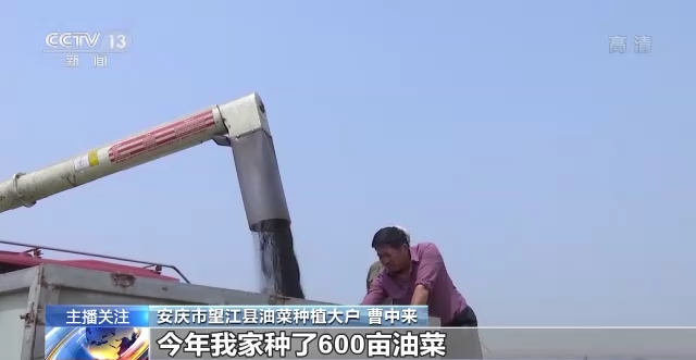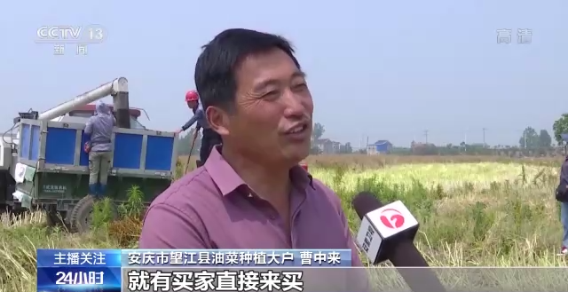 安庆市望江县油菜种植大户 曹中来:去年我们才种了200亩,今年就种了600亩。油菜这边割完了以后,就有买家直接来买。
