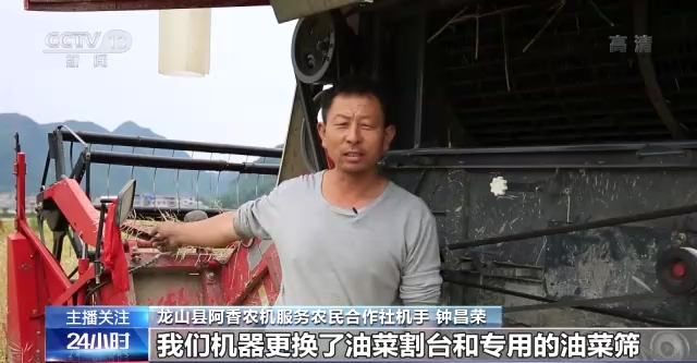 龙山县阿香农机服务农民合作社机手 钟昌荣:我们机器更换了油菜割台和专用的油菜筛,让油菜筛得更加干净。
