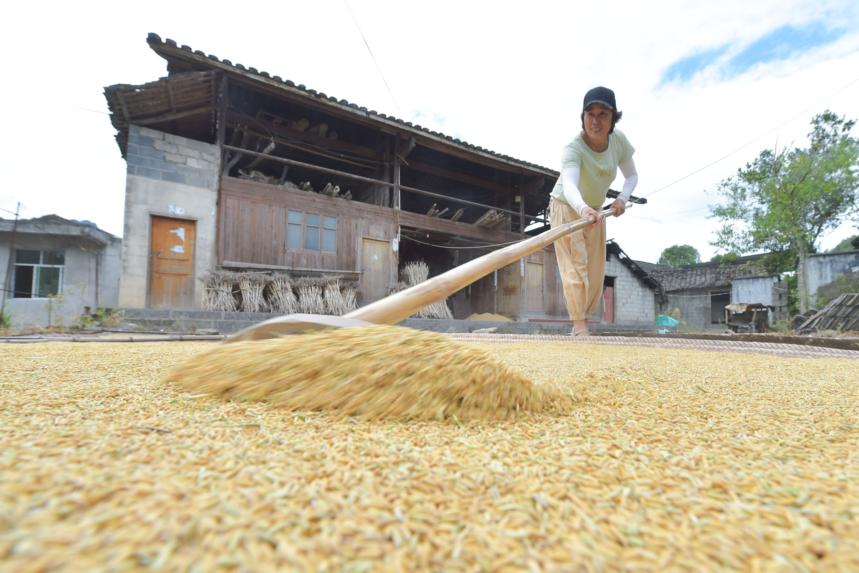 “我家今年这里是八分地,往年只能收到800多斤,今年打了1300多斤,算是丰收了。”充足的水源和阳光的加持,余佳海的水稻长势良好,在他的脸上,有着掩饰不住的喜悦。