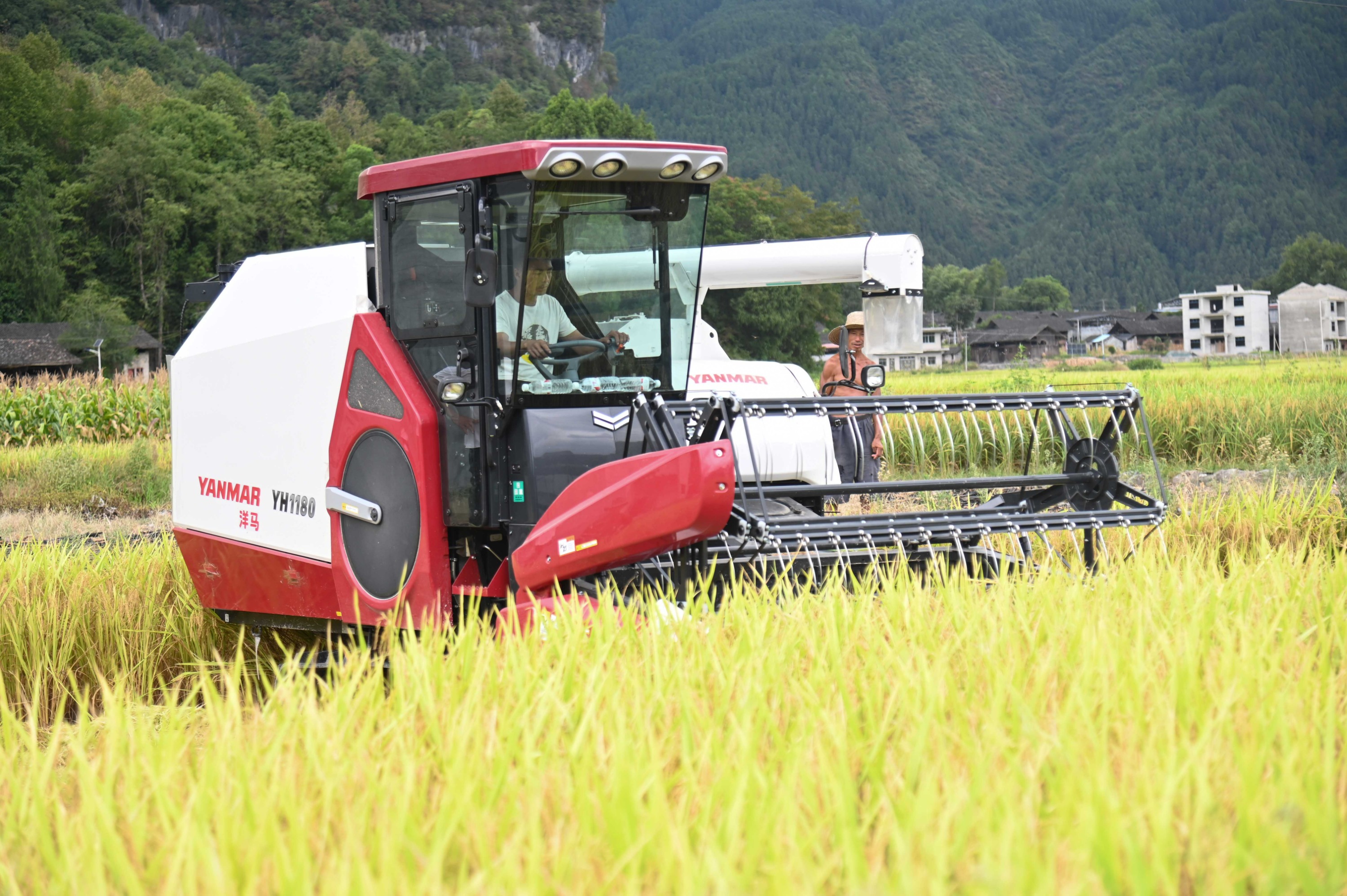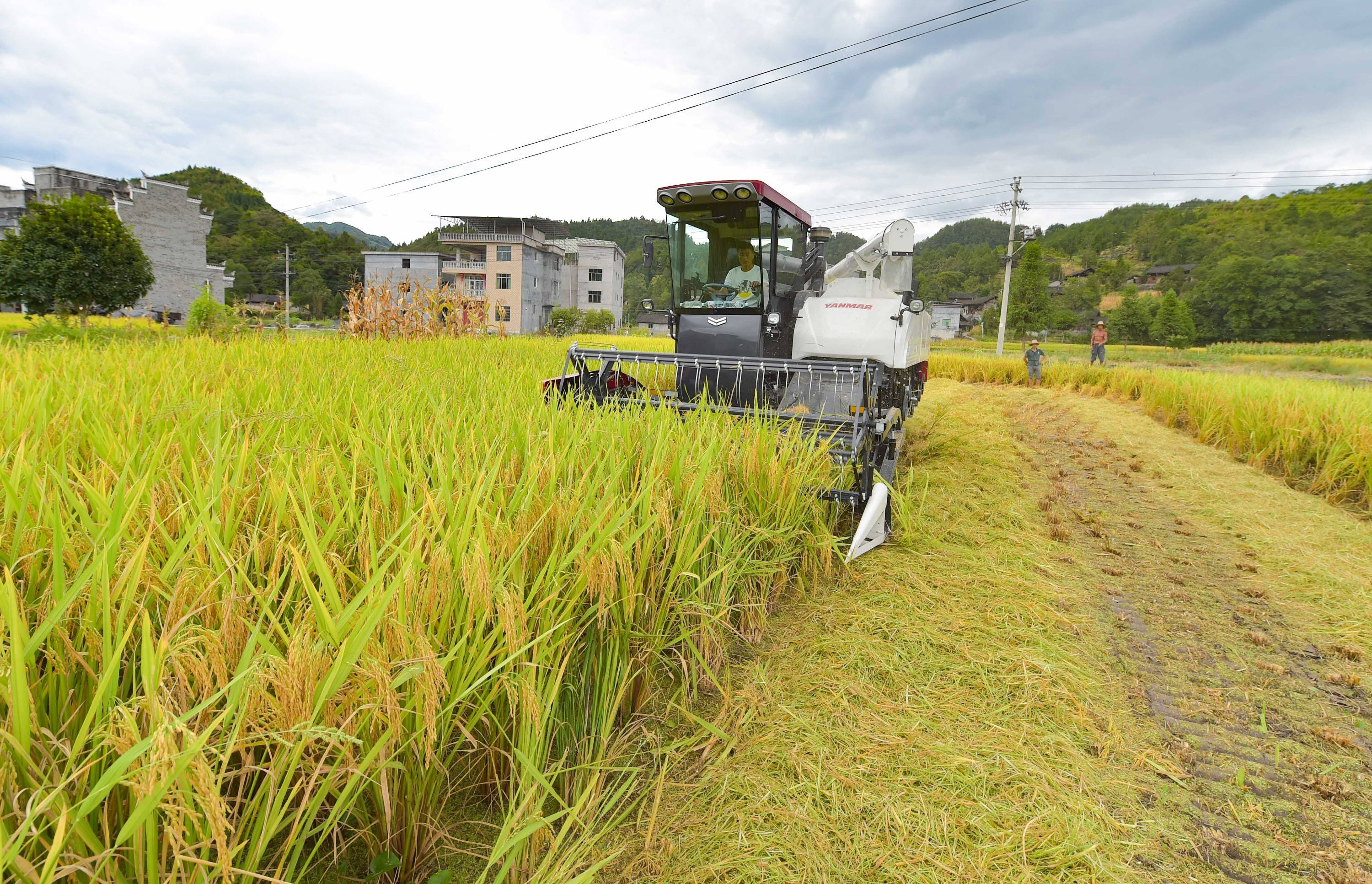 据悉,给村民采收水稻的收割机来自松桃苗族自治县助民农机专业合作社,是松桃苗族自治县寨英强村富民综合发展有限公司的子公司。今年5月,该合作社投入200万元购进插秧机、旋耕机、无人机、收割机、烘干机等设备,还专门培训了操作机械化设备的人员,为全镇所有村寨服务。