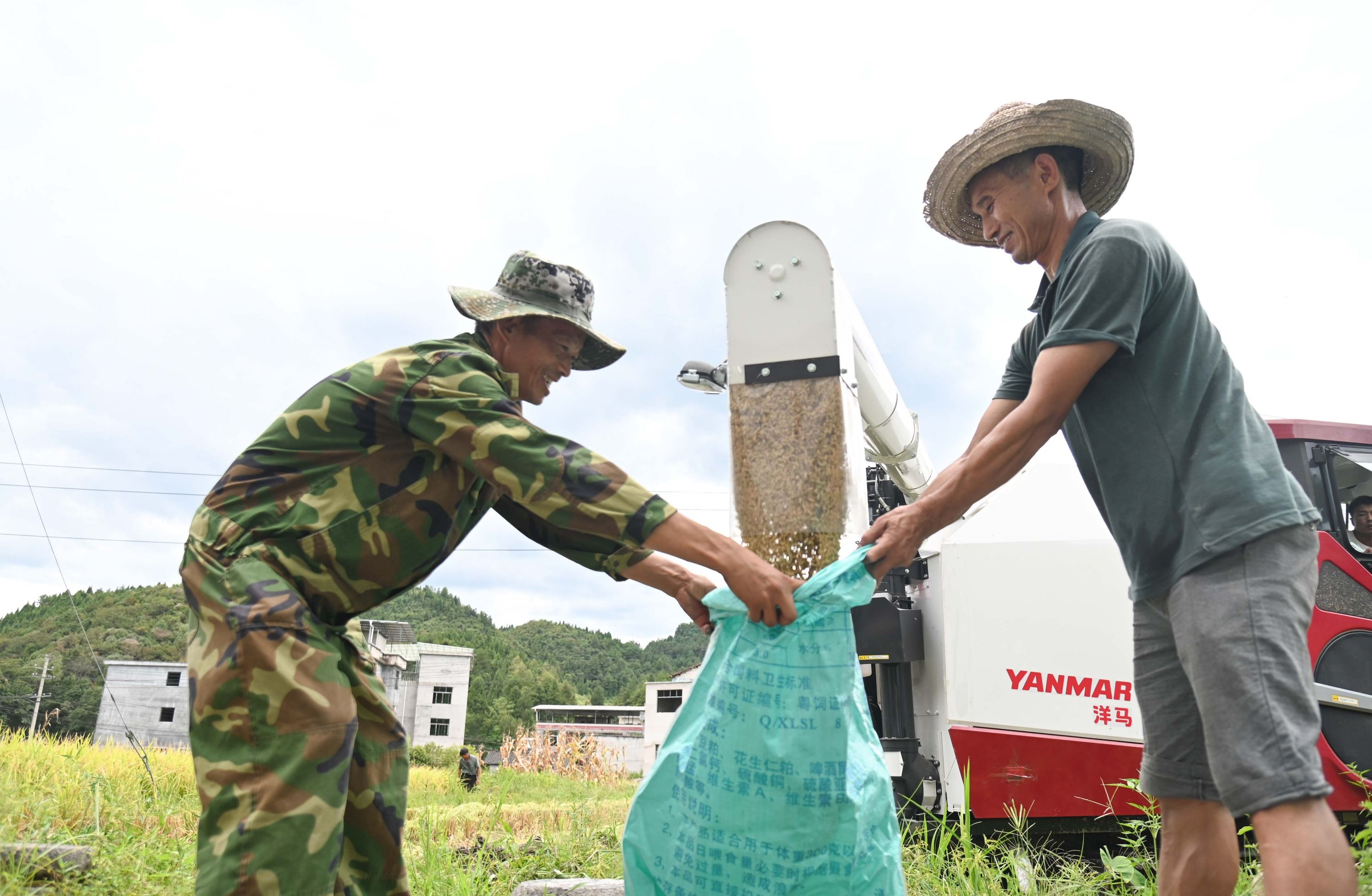 收割机所采收的水稻是罗家寨村余佳海种植的,他的稻田300米处便有一条河沟,有着充足的水源。尽管今年全县部分地方遭受干旱,但是他的水稻未受到影响。