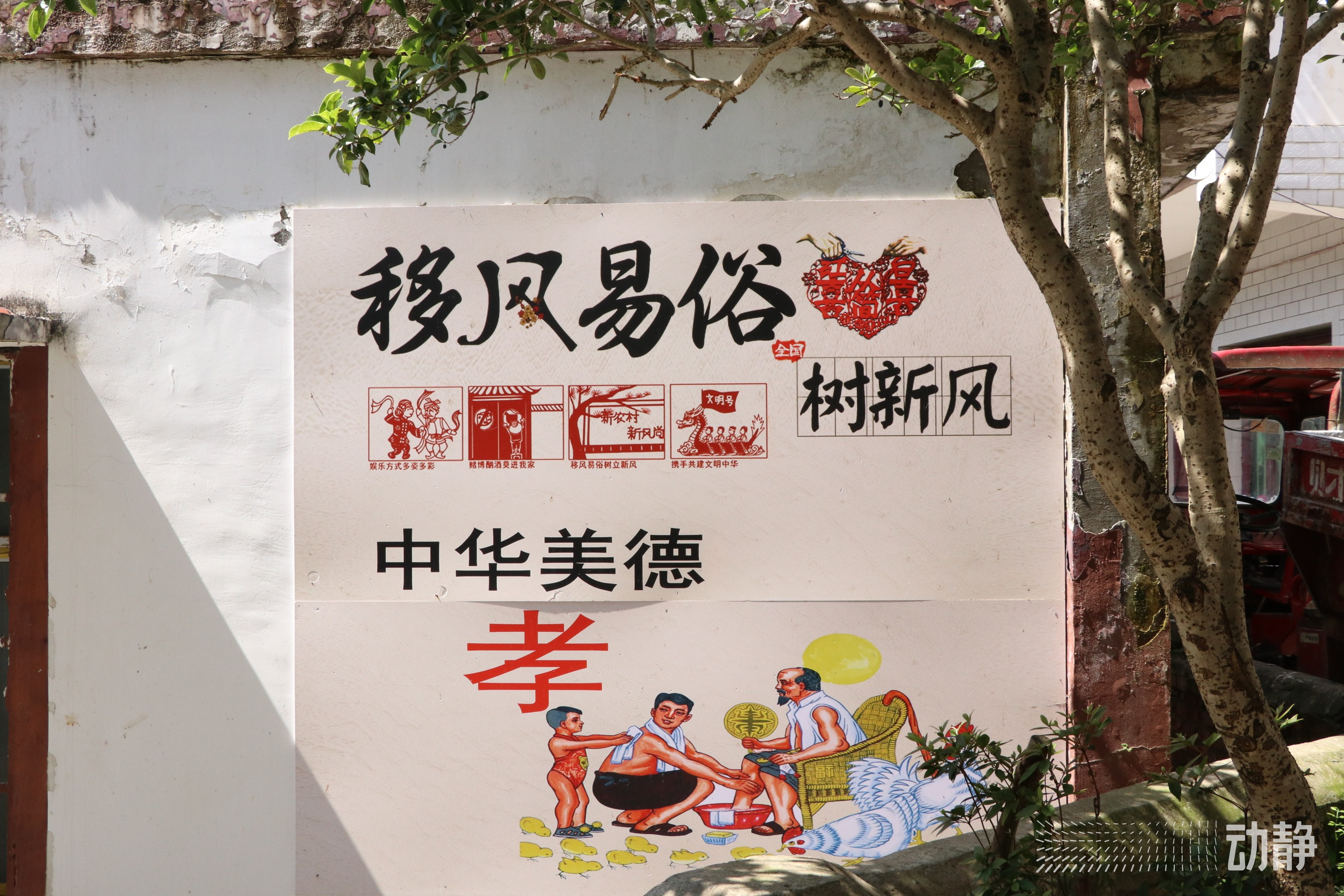 如今,行走在车坝村,“从善积德”“勤俭持家”“孝老爱亲”“邻里和睦”等精美墙画映照在蓝天白云下,焕发出新农村绚丽景气,铺展开乡村振兴新画卷。