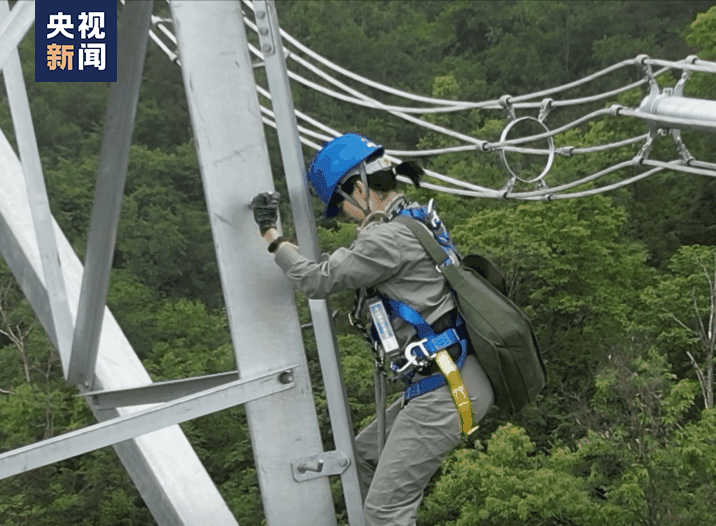 背着20多斤的工具包,爬上80米高空