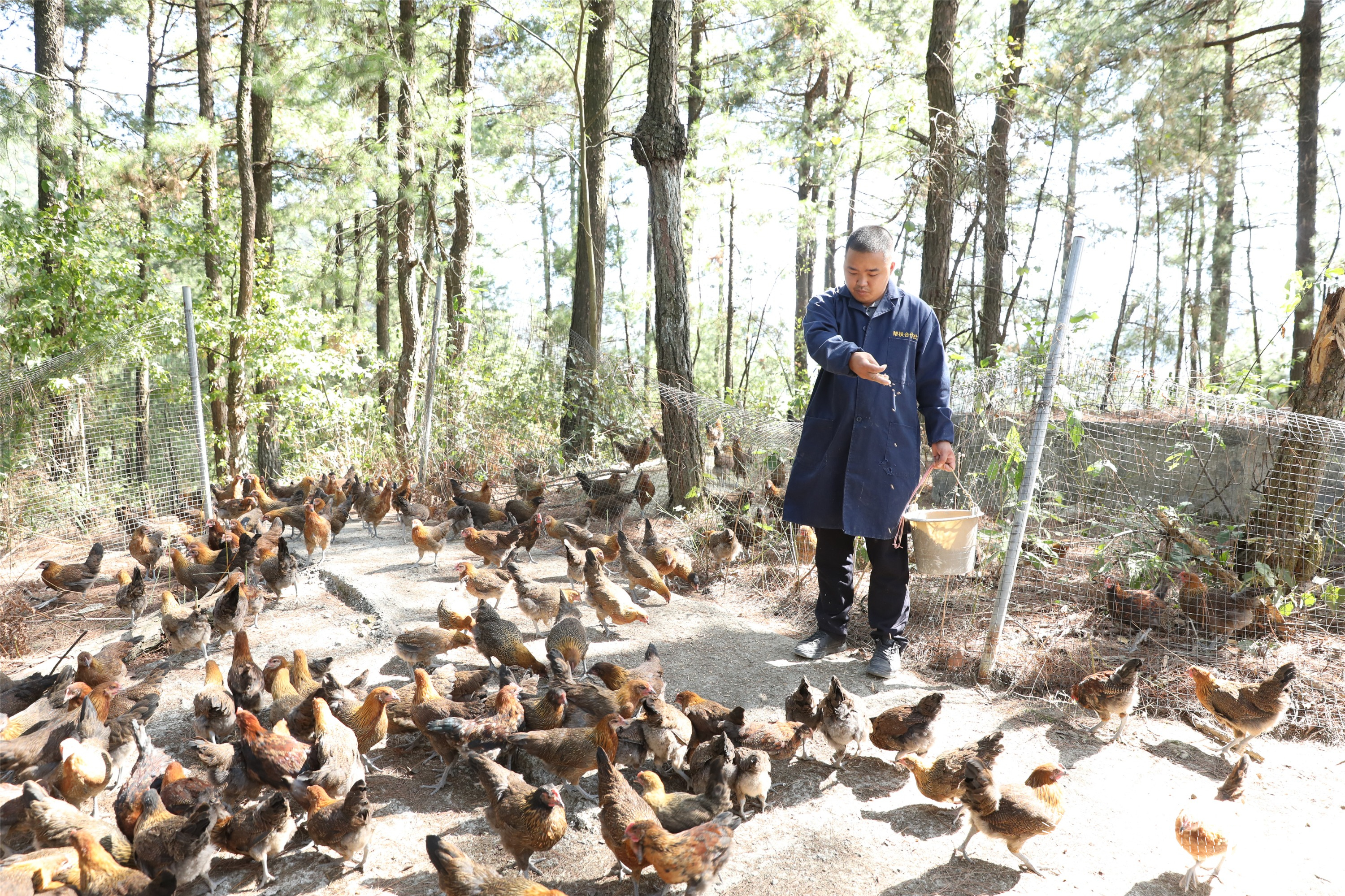 秋天的阳光洒在剑河县岑松镇苗格里种养殖专业合作社的林下小香鸡养殖基地里,成群的小香鸡穿梭在林间,随着饲养员将手中的饲料撒下,基地内顿时鸡鸣四起,无比热闹。