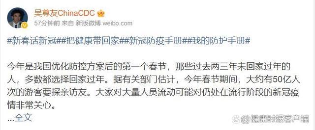1月21日,中国疾控中心流行病学首席专家吴尊友在个人微博发表长文,谈到春节期间及近期疫情、春节期间个人疫情防护以及国外新冠变异毒株的流行等问题。
